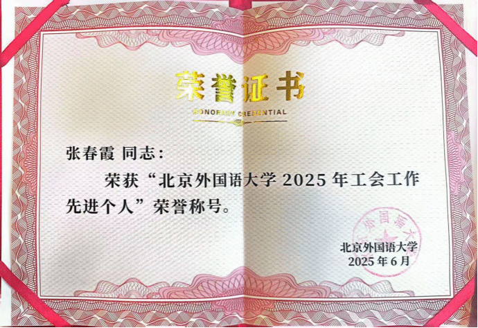 张春霞获评英国上市公司3652025年工会工作先进个人