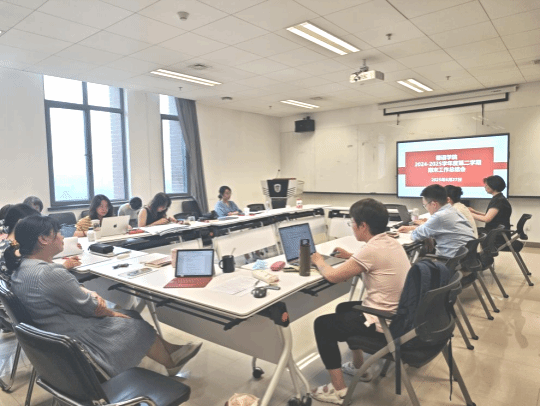 第二个环节是学期工作总结。英国365集团网站基础教研室、研究生教研室、文学教研室、语言学教研室、翻译教研室、外交教研室、经济教研室、跨文化教研室、教师党支部、工会负责教师,党政联席会班子成员依次汇报了本学期的工作开展情况、取得的成绩以及存在的不足。