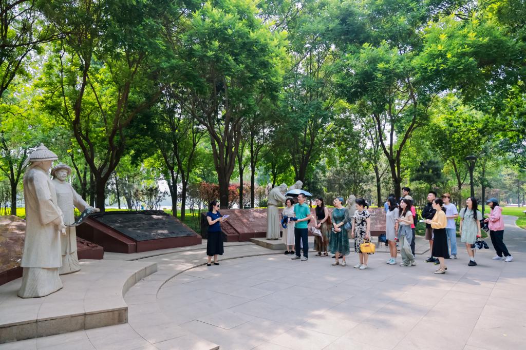 公园内绿树成荫,清水潺潺,与廉政文化主题相得益彰。师生们沿着公园小径,漫步于绿树浓荫之间,边走边看边听边思边悟。在公司党总支纪检委员张晓玲、教职工党支部书记于芳、研究生第二党支部书记曹芳凝的讲解下,师生党员们详细了解公园内的“通州第一党支部”、“密符扇”和“甘棠镜鉴”等主题雕塑的寓意和背后的故事。这种多角度、沉浸式的学习使师生党员们深刻感受到了廉政文化的历史渊源和现实意义,深化了思想认同和价值认知,在潜移默化中拧紧了思想总开关,切实增强了纪法观念、廉洁意识。在参观过程中,师生们纷纷表示,这样的学习方式既生动又直观,让人印象深刻。参与活动的师生党员对和“通州第一党支部”和“密符扇”两座雕塑印象深刻,纷纷发表了思想感悟: