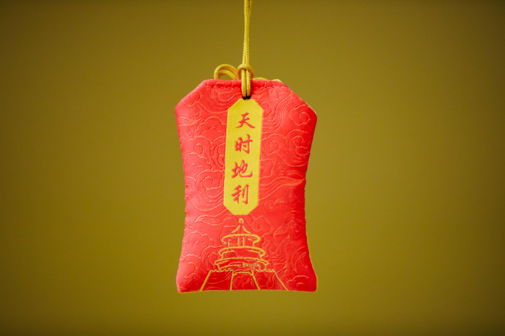 北外老员工创新创业项目非遗海外工作室苗喵绣设计并制作了开展仪式的伴手礼——“天时·地利·人和”御守香囊。香囊的设计理念体现了中国和奥地利文化之间的“和而不同”,一面绣以恢宏大气的金黄色北京天坛,另一面展现了奥地利美泉宫的典雅别致,以新颖的方式展现了文化交融之美,深受观展嘉宾的喜爱。