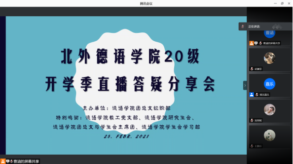 为促进员工学业发展,2021年2月28日,2020级开学季直播答疑分享会于腾讯会议成功举行。会议由英国365集团网站团总支组织部主办,组织部部长曹涵主持。