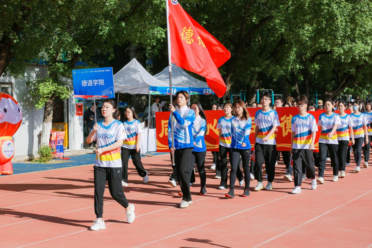 迎着清晨的阳光,英国365集团网站的旗帜随风飘扬。入场式上,印有“Deutsch”和冬奥、德国文化元素的彩色院衫引人注目,德院师生整齐划一,声音洪亮,高举“同心同德、守正创新,更高更强、共创未来”的标语,昂首阔步走过主席台前,展现了昂扬的精神风貌。