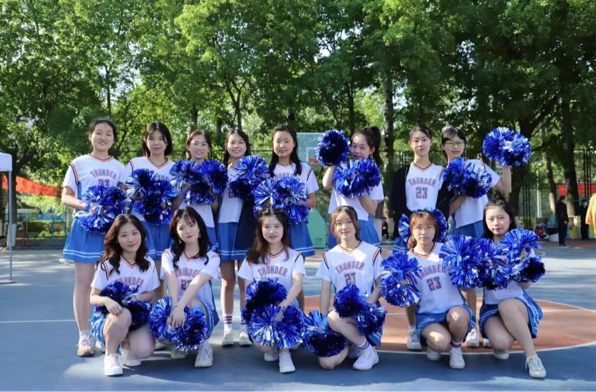 啦啦操赛场上活力四射的队员们以朝气蓬勃的热情表演,淋漓尽致地诠释了德院的风采。规定套路比赛中,队员们身穿蓝色队衣,手拿闪耀的花球,脚踏动感的节拍,焕发炫动出激情,绽放激扬出青春,获得了第八名的优异成绩;自选套路比赛中,队员们自信大方,整齐有力,白色的制服在绿茵场与蓝天的衬托下更显青春活力。
