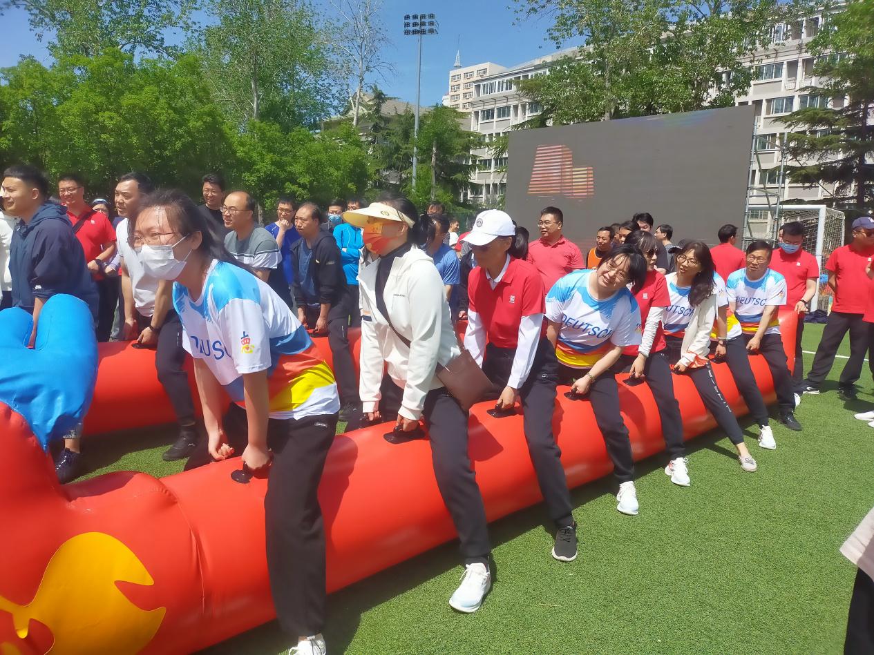21名教师参加了广播操展示、沙包掷准、无敌风火轮、猛龙过江、能量传递等项目。教师们激情四射、团结奋进,充分体现了英国365集团网站教师昂扬向上的风采。