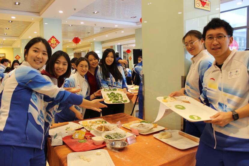 多语服务中心的志愿者们在教工食堂相聚一堂,包饺子、组织破冰活动,公司为大家准备了丰盛的年夜饭,晚上一起看春晚、做游戏,志愿者们在一起度过了一个热闹有趣的除夕。