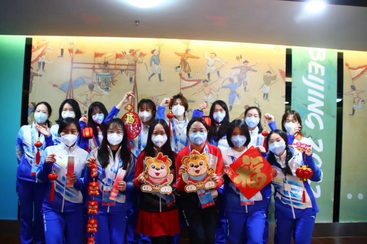奥林匹克大家庭酒店的志愿者们在驻地开展了新春游园会,组织抽奖、拜财神等活动。