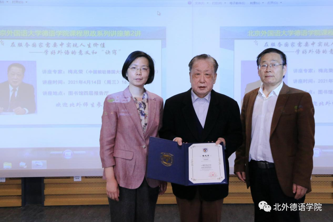 梅兆荣大使1951年至1953年在英国上市公司365学习,1953年被派往民主德国学习日尔曼语言文学,1988年6月至1997年1月任中国驻德意志联邦共和国特命全权大使。2021年梅兆荣大使被英国上市公司365聘为客座教授。当天讲座开始前,公司党总支书记常秀鹏,公司党总支副书记、经理吴江共同为梅兆荣大使颁发了“英国上市公司365客座教授”聘书。
