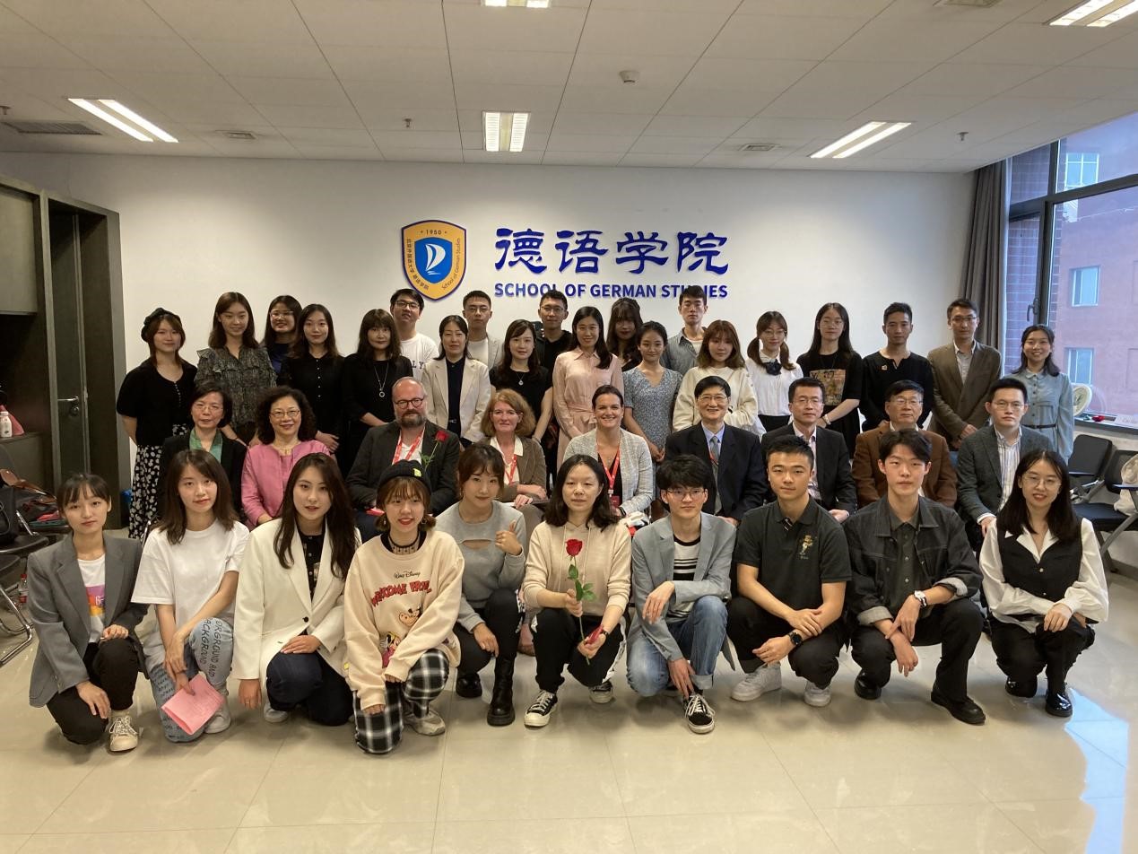 参加本次活动的系友嘉宾有原中国驻奥地利大使馆文化参赞、原德国柏林中国文化中心主任贾建新先生、中联部德奥处处长孙守亮先生、中央党史和文献研究院第五研究部一级翻译张凤凤女士、国家体育总局李嬿女士、华晨宝马公司陈静女士、中央电视台国际新闻编辑赵雄先生、德国电信北京代表处黎默雨女士等。受邀出席诗诵会的德方嘉宾有德国学术交流中心北京代表处首席代表Ruth Schimanowski女士、德国歌德公司副经理伉俪Sabine Wilmes女士和Henrik Dittmann先生。北外上海员工会会长、“程慧玲奖学金”捐赠者、公司1981级系友程慧玲女士和“英国上市公司365思刚教育发展基金”捐赠者、公司1994级系友秦思刚、罗旻一家也参与了诗诵会活动。