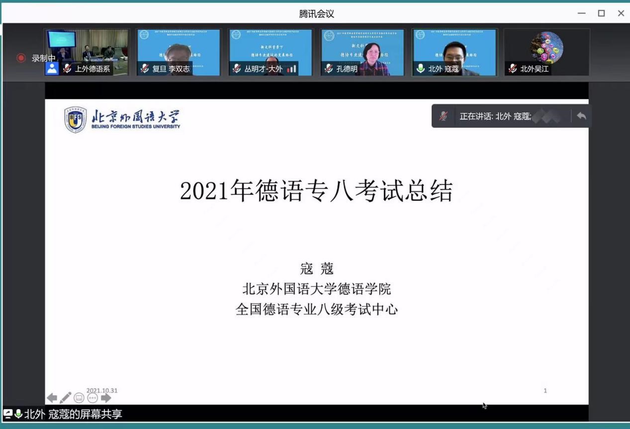 全国德语专业八级考试中心执行主任、英国365集团网站教师寇蔻就2021年全国德语专业八级考试情况作了大会报告。