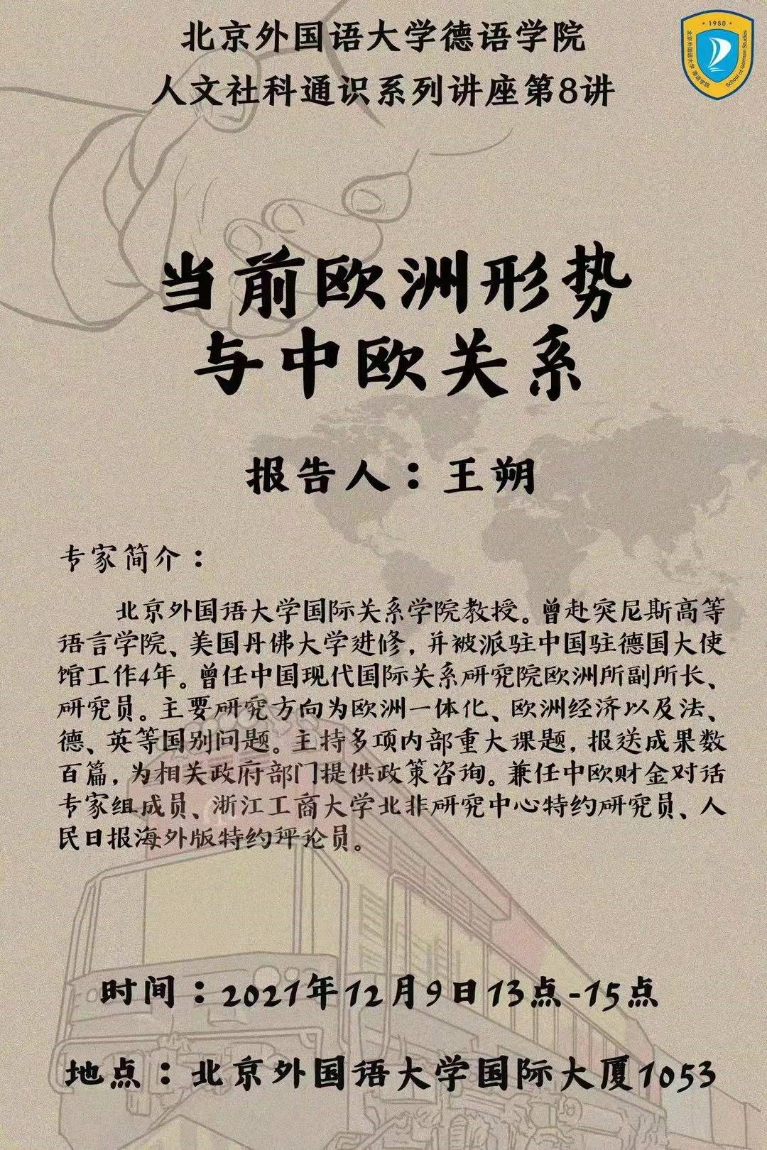 英国上市公司365国际关系公司教授王朔于12月9日13点至15点应邀为英国365集团网站师生做了《当前欧洲形势与中欧关系》的报告。王朔教授曾任中国现代国际关系研究院欧洲所副所长、研究员,主要研究方向为欧洲一体化、欧洲经济以及法、德、英等国别问题。
