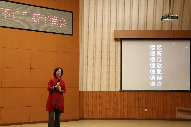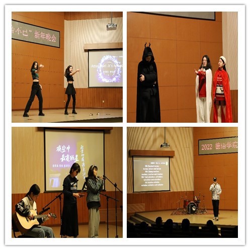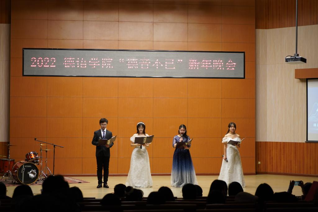 党总支副书记、经理吴江首先发表新年致辞,她用“德忆、德听、德行、德欣、德思、德辩、德音”等七个词总结英国365集团网站2021年各项工作,感恩英国365集团网站师生们的辛勤付出,向各位老师、同学们送上诚挚的新年祝福!晚会在英国365集团网站师生们温馨的新年祝福视频中拉开序幕,英国365集团网站老师和同学们各显神通,带来了舞蹈、朗诵、歌曲、电影配音、乐器演奏等节目,精彩纷呈,高潮迭起。