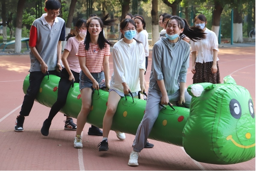 趣味运动会共分为七个项目:“杯中乒乓”、“眼疾手快”、“运乒乓球”、“转圈抱团”、“跳长绳”、“过河搭桥”、“猛龙过江”,考验参赛队伍团结协作、互相配合的能力。为了让同学们尽快熟悉比赛规则,每一支队伍都有机会试玩。在试玩阶段,大家已经表现得跃跃欲试,热火朝天。