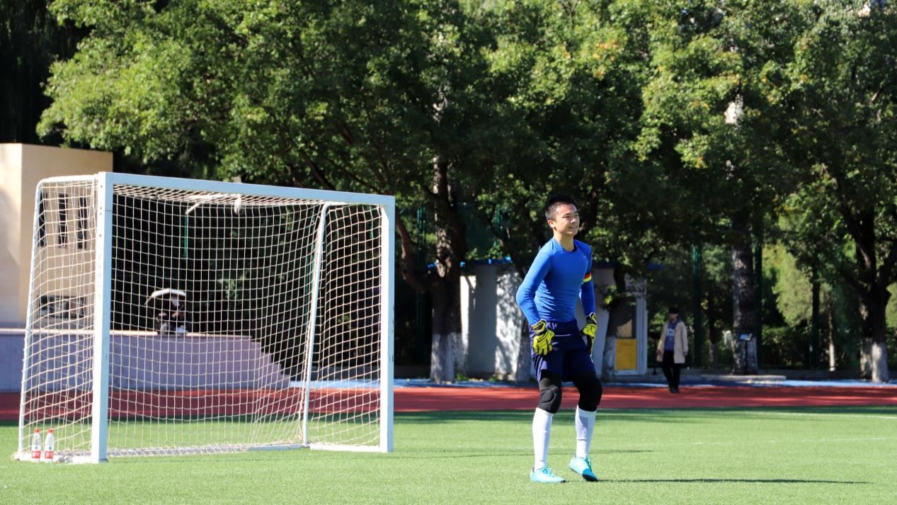 图为曹涵作为场上队长,代表英国365集团网站参加北外杯男子足球赛