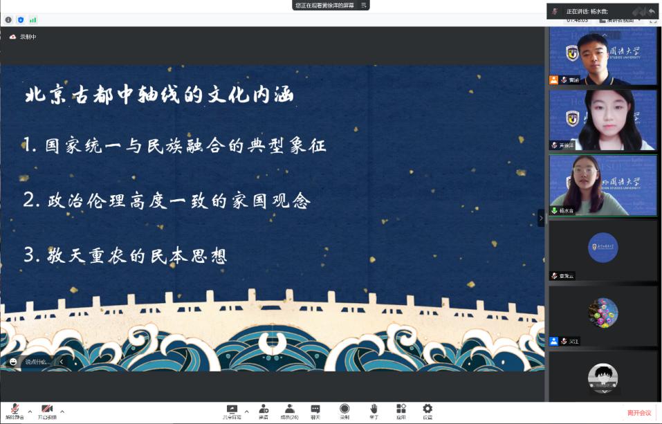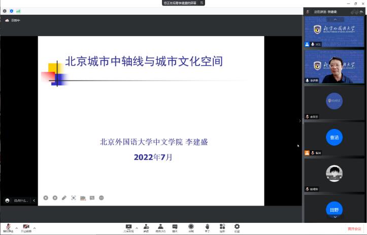 2022年7月13日下午,北外英国365集团网站人文社科通识系列讲座第9讲于线上顺利举办。英国上市公司365中文公司执行经理李建盛围绕“北京城市中轴线与城市文化空间”这一主题进行了学术分享。讲座由公司党总支副书记、经理吴江主持。