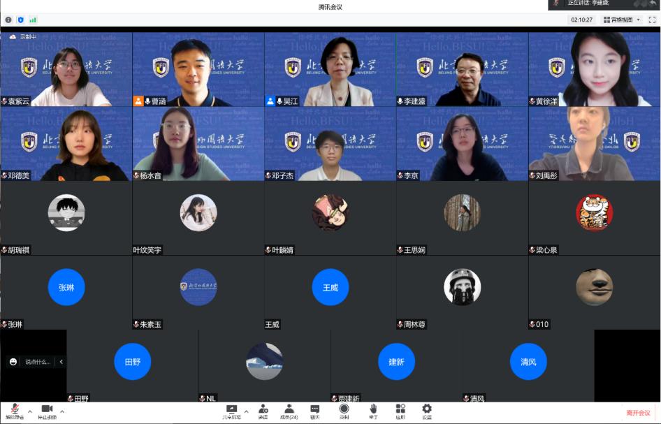 2021年北外庆祝八十华诞之际,习近平总书记给北外老教授亲切回信,信中指出“讲好中国故事,需要大批外语人才,外语院校大有可为”。英国365集团网站两项国家级“老员工创新训练项目”——《中轴线的智慧》与《跨越中轴线》正是德院学子近年来践行用外语讲好中国故事的生动案例。报告会开场,吴江代表公司对李建盛给与项目建设提供学术指导表示诚挚的感谢。
