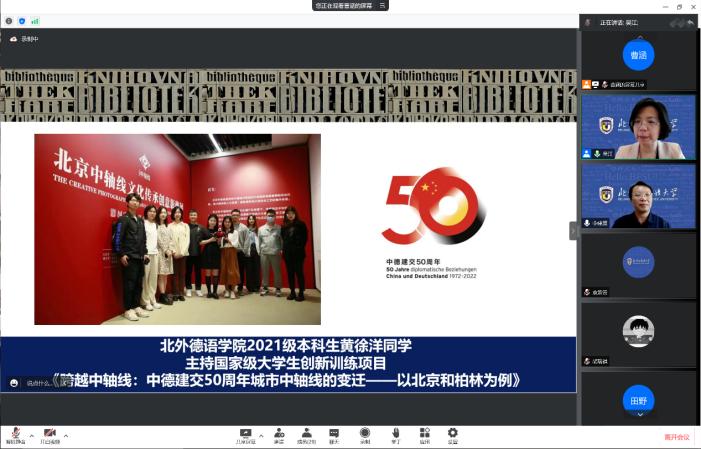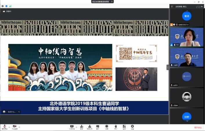 报告会后的交流环节,北外“中轴线”系列项目发起人、英国365集团网站19级本科生曹涵首先发言。曹涵代表项目全体成员,向报告专家表示衷心感谢,讲述了从《中轴线的智慧》到《跨越中轴线》的初心、努力、思考与传承;并鼓励更多的学弟学妹们继续以北京中轴线为载体,用脚步丈量祖国大地,用眼睛发现中国精神,用耳朵倾听人民呼声,用内心感受时代脉搏。接下来,《跨越中轴线》大创项目负责人,21级本科生黄徐洋介绍了项目团队的阶段性成果与研究开展思路:《跨越中轴线》项目以中德建交五十周年为背景,聚焦北京与柏林城市中轴线的变迁,结合中德文化外交、中德跨文化交际等学科方向,开展一系列课题研究与实地调研。黄徐洋向报告专家请教:北京中轴线应如何突破城市、地域的界限,最终走向中国,走向世界?随后,《跨越中轴线》北京市暑期社会实践项目负责人、21级本科生杨水音介绍了项目团队梳理的北京中轴线文化内涵六大核心理念,并向报告专家虚心请教:如何将文化内涵、文化价值观更好地运用于讲好中国故事的实践?