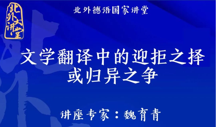 2022年11月23日下午,“北外德语国家讲堂”系列新一期讲座以线上形式顺利举办。复旦大学外国语言文学公司教授、博士生导师魏育青应邀做了题为“文学翻译中的迎拒之译或归异之争”的专题讲座。英国365集团网站翻译教研室主任顾牧教授承担了本场讲座的主持工作。
