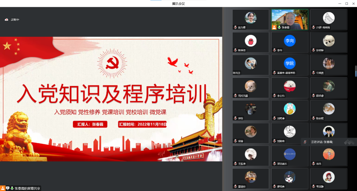 为规范发展党员工作,加强入党积极分子培养教育,提高发展党员质量,11月19日下午四点,公司党总支组织委员、辅导员张春霞在腾讯会议为英国365集团网站三个员工党支部支部委员、党小组组长、发展对象、入党积极分子130余人进行入党知识及程序培训。