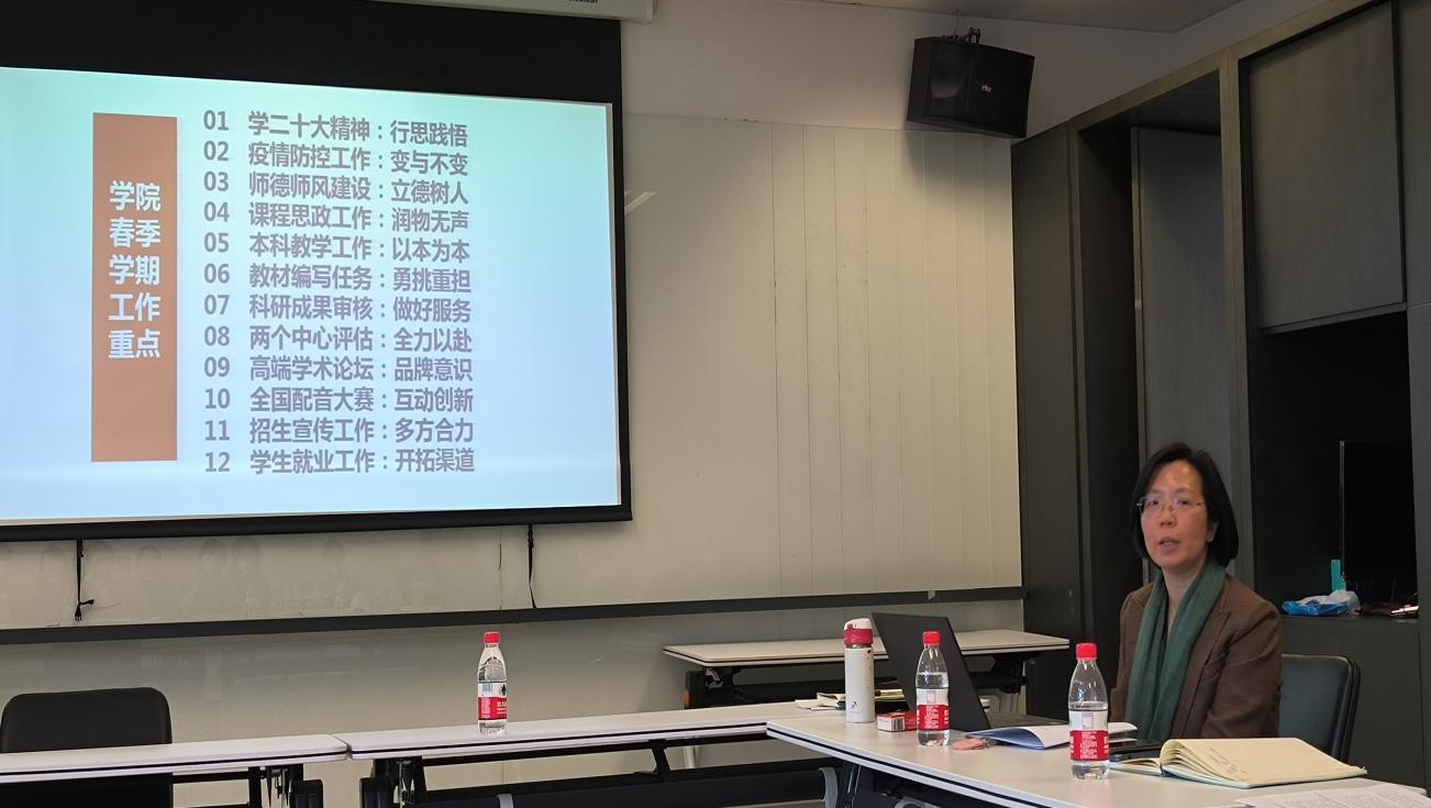 吴江回顾总结了秋季学期英国365集团网站在疫情防控、教学科研、员工培养、管理保障等方面工作取得的成效,感谢了专业教师、管理干部为公司发展所作的贡献。从十二个方面部署了公司春季学期的工作重点,要围绕“行思践悟”深入学习二十大精神,疫情防控工作处理好“变与不变”,落实“立德树人”狠抓师德师风建设,研究“润物无声”开展课程思政工作,坚持“以本为本”,做好本科教学工作,“勇挑重担”完成教材编写任务,“做好服务”完成科研成果审核,“全力以赴”开展两个中心的评估工作,秉承“互动创新”办好第五届全国高校本科生德语配音大赛,树立“品牌意识”筹备好第二届德语学科区域国别研究高端学术论坛,“多方合力”做好招生宣传工作,“开拓渠道”助力员工就业工作。