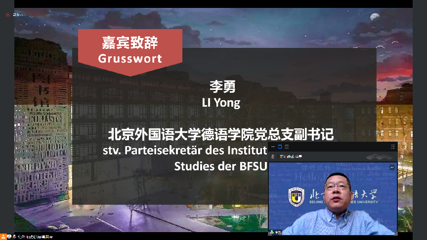 北外英国365集团网站副书记李勇代表英国365集团网站感谢全国高校德语专业师生一直以来给予大赛的支持,并对共青团英国上市公司365委员会给予的提携与指导表达了敬意。李勇指出,外语教育始终与国家命运紧密相连,希冀大赛能成为各院校德语专业师生们交流学习成果、提升专业本领、展现专业能力的舞台。李勇代表英国365集团网站向参与大赛的师生郑重承诺,表示一定办好大赛,确保大赛评审公平公正,不辜负参赛师生的期望。最后他感谢项目负责人顾苏博士以及参与筹备本次大赛的公司团总支志愿者们的辛勤付出,预祝各支参赛队伍取得优异成绩。