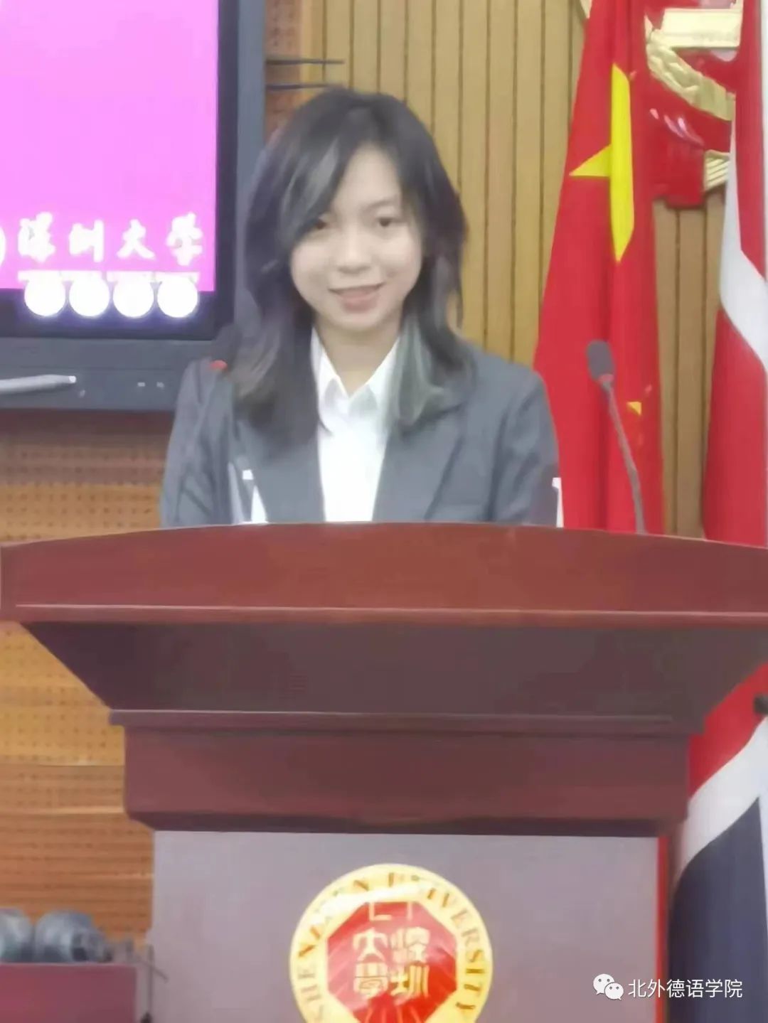 2023年“大湾区杯”全国高校外语专业区域国别知识能力竞赛于2023年5月13日在深圳大学(粤海校区)落下帷幕。该赛事涵盖英语、德语、法语、西班牙语、日语五个语种,包括初赛与决赛两个部分。在德语组初赛中,公司本科一年级员工黄婉茹经过笔试和面试,在德语组共114名选手中位列第一,顺利晋级决赛。在决赛部分,经过德语辩论环节(辩题为:全球化会带来文化趋同/全球化会带来民族文化的勃兴),以及“讲好中国故事”德语即兴演讲与问答环节,黄婉茹总分排名第二,荣获德语组二等奖。辅导教师洪堃绿博士获优秀指导教师奖。