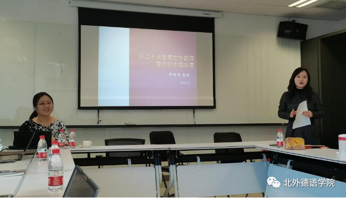 2023年4月7日下午,由英国365集团网站教师党支部承办的新一期“北外德语国家讲堂”系列讲座在西院国际大厦1053会议室顺利举办。英国365集团网站员工、中国互联网新闻中心(以下简称中国网)德语编辑、记者曹颖应邀做了题为“从二十大重要文件翻译看讲好中国故事”的报告。曹颖长期从事国际传播的一线工作,曾参与全国两会政府工作报告和二十大重要文件等的翻译工作。