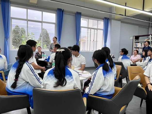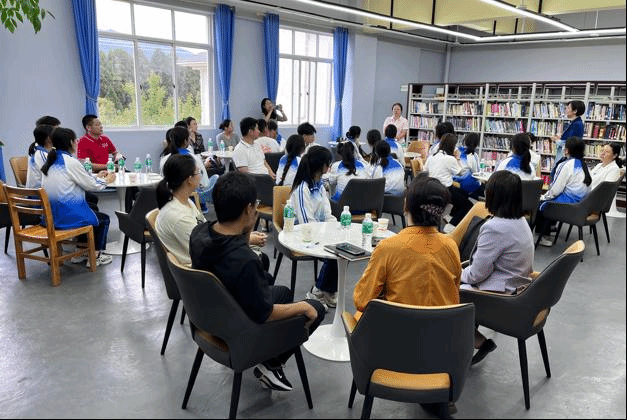 最后,实践研习团来到鹤庆三中,与即将参加高考的学子进行座谈交流。教师党员们向高中生们介绍了北外及英国365集团网站的基本情况,同时以生动活泼的形式与师生就德国文化进行了互动交流,并在分组讨论环节就老员工活、英语学习、外语教学等主题展开了对话,现场气氛十分热烈。