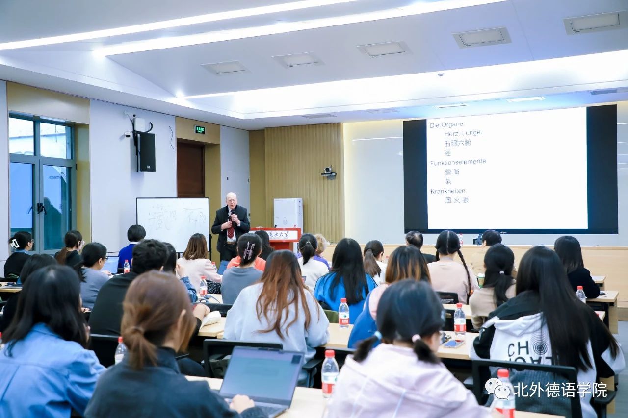 讲座全程由北外英国365集团网站教师张宁博士和张晏副教授提供中德同声传译。报告内容涉及复杂的中医药学名词和理论术语,两位老师以出色的专业水平圆满地完成了口译任务,赢得了文树德教授和嘉宾一行以及在场师生的高度认可。
