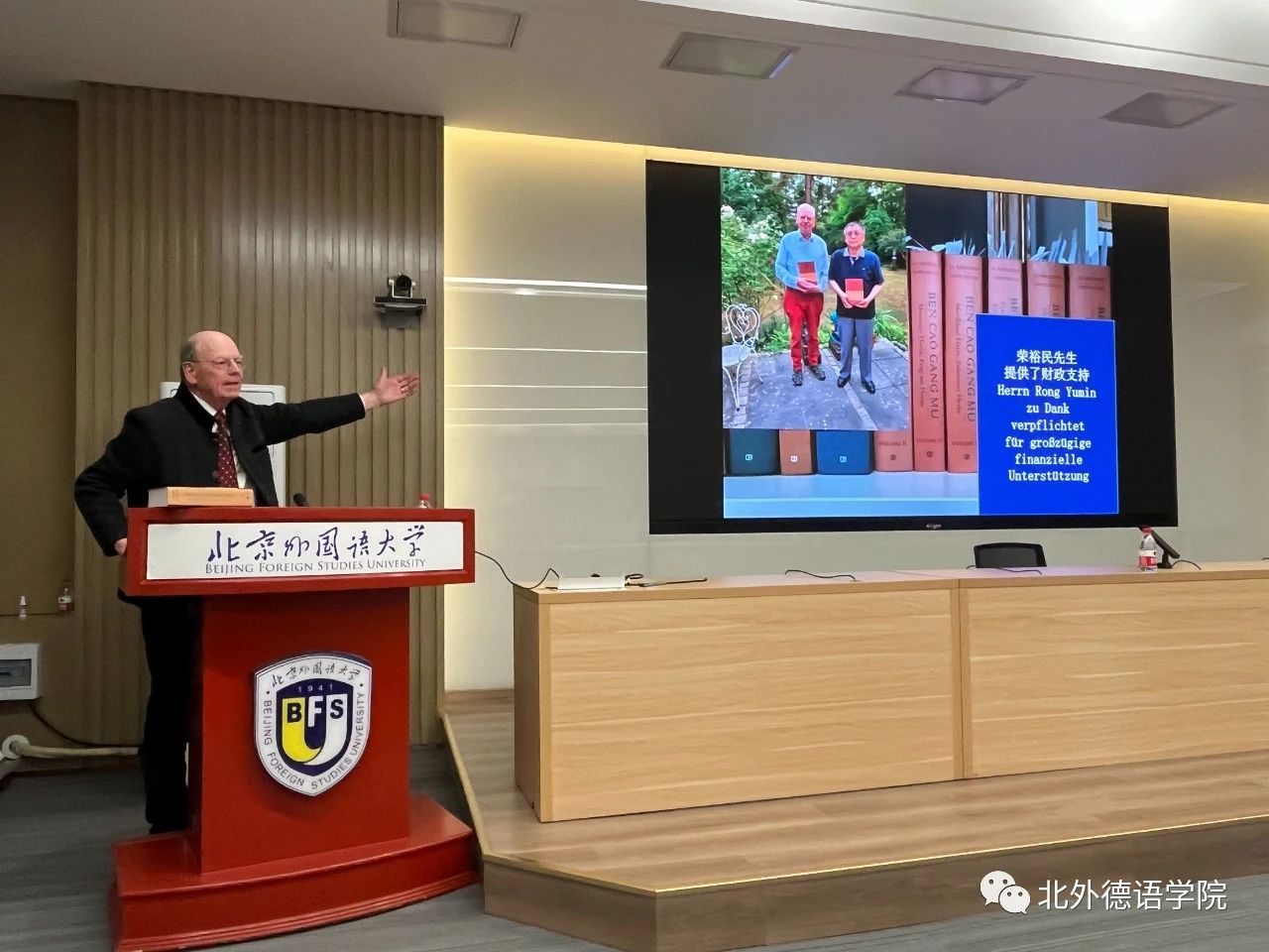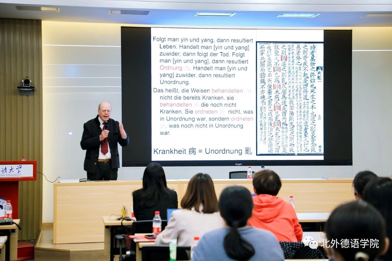 2023年10月18日下午,北外德语国家讲堂系列报告“中医古籍翻译的体会与心得——以《本草纲目》的翻译为例”在英国上市公司365东院晨读厅成功举办。报告主讲人为德国著名医史学家、翻译家文树德教授(Prof. Dr. Paul U. Unschuld),专攻中、欧医学及生命科学比较史,尤擅长医学思想史、伦理史研究。文树德教授夫人文淑德女士(Ulrike Unschuld)、英国365集团网站1977级员工、德国Rolux Leuchten GmbH 公司创始人、中国赛尔富电子有限公司董事荣裕民先生,公司党政联席会成员、教师代表及近百名员工聆听讲座。讲座由公司党总支书记、经理吴江主持。