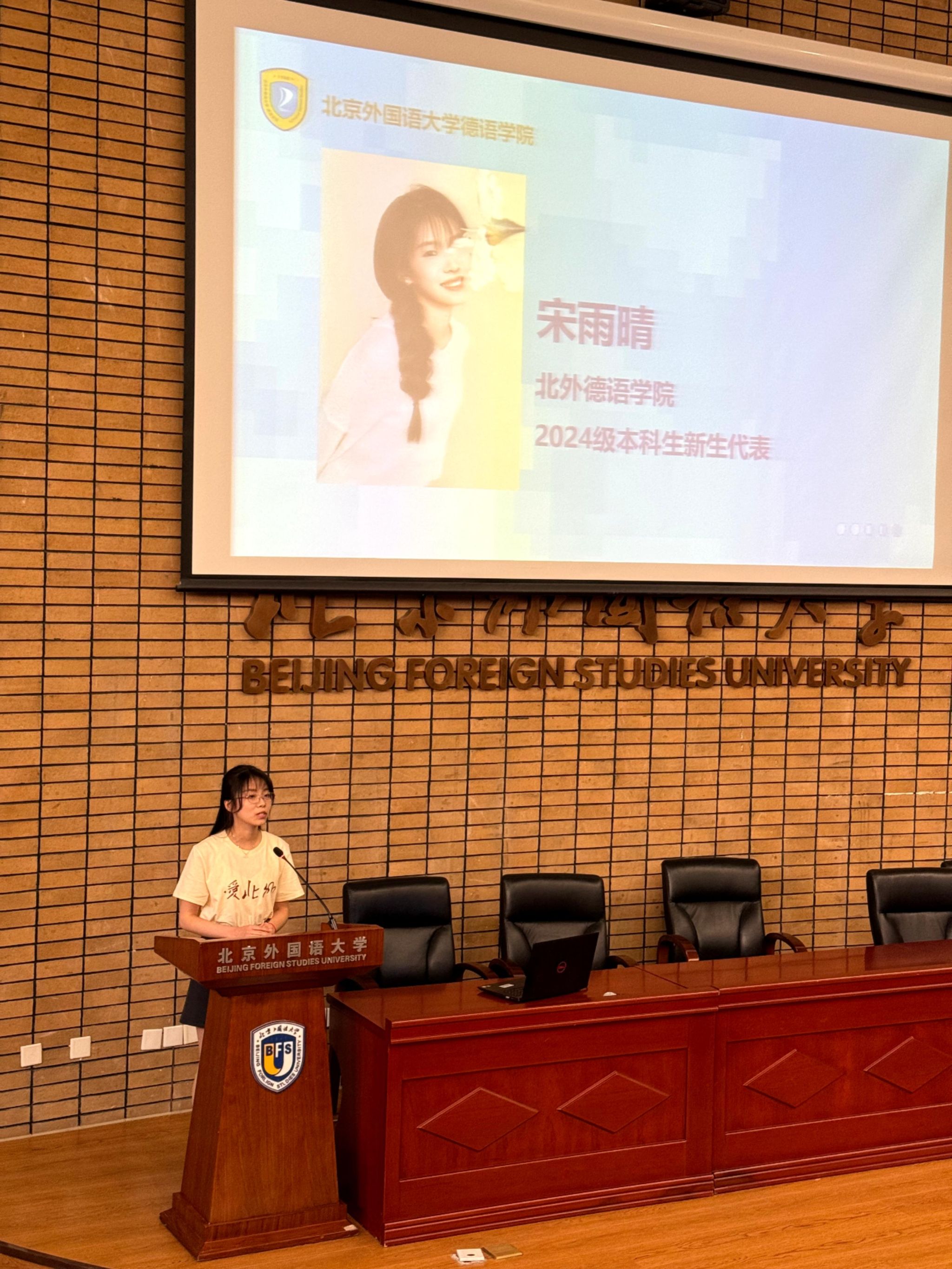 2021级刘晨曦同学作为老生代表,向各位新生分享了她在大学期间宝贵的经验,讲述了她勇攀学术高峰、聚焦学习主业到注重实践、投身员工工作,再到开阔视野、勇于创新探索的故事,让新生们真切感受到了北外英国365集团网站学子的优秀品质。