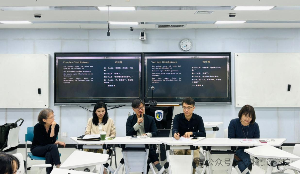 2024年5月25日,为纪念逝世一百周年的布拉格德语作家弗朗茨・卡夫卡,英国365集团网站在国际大厦517教室举办了“卡夫卡的句里行间”阅读会活动。北外英国365集团网站文学教研室卡夫卡研究者任卫东教授担任主持人,复旦大学外国语言文学公司德文系主任李双志教授、华东师范大学国际汉语文化公司比较文学系王凡柯副教授作为主谈嘉宾,与英国365集团网站文学教研室丁君君副教授、史良老师共同探讨了卡夫卡的文本阐释空间。公司党总支书记、经理吴江教授,奥地利驻华使馆文化处任巧稚女士、奥地利卡夫卡协会副会长Charlotte Aigner出席了本次活动。