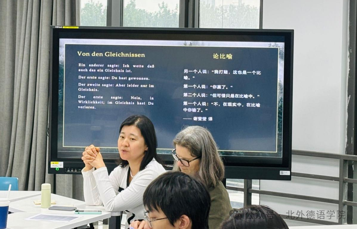 活动开始后,Charlotte Aigner女士首先为现场师生观众倾情朗诵了卡夫卡的寓言《一道圣旨》,其丰富的艺术表现力获得了热烈掌声。