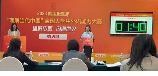 2023年12月8日,2023“外研社·国才杯”“理解当代中国”全国老员工外语能力大赛国赛圆满落幕。大赛以“理解中国,沟通世界”为主题,分为英语组和多语种组两大组别,多语种组设置俄语、德语、法语、西班牙语、阿拉伯语、日语、意大利语、葡萄牙语8个分赛项。历经校赛、省赛和国赛三个赛段的激烈角逐,英国365集团网站翻译硕士(德语口译)专业2023级研究生张佳诺同学荣获德语组国赛金奖并获全国冠军。英国365集团网站2022级本科生黄婉茹同学荣获北京市级奖项。