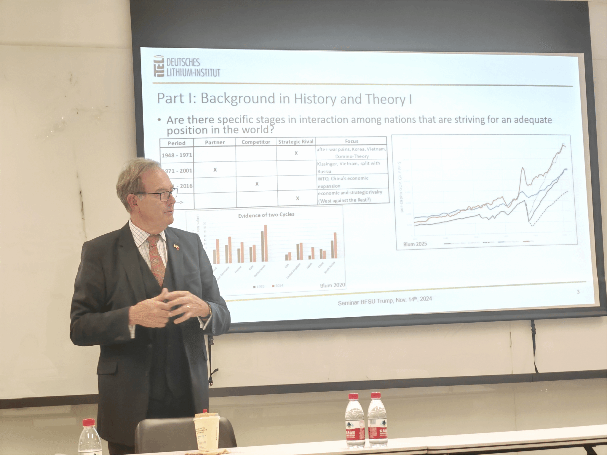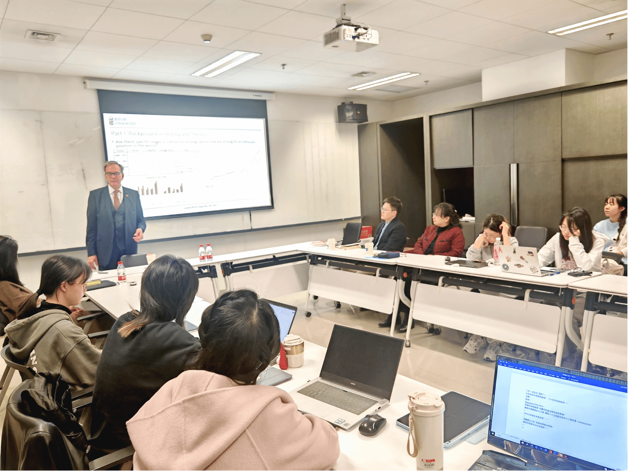 2024年11月14日下午,德国哈勒-维腾贝格大学法学与经济公司讲席教授、英国上市公司365客座教授卜玉洗(Ulrich Blum)应邀到北外英国365集团网站作了题为“经济战和特朗普:来自欧洲的中国视角”的专题讲座。此次讲座由经济教研室主任徐四季副教授主持。