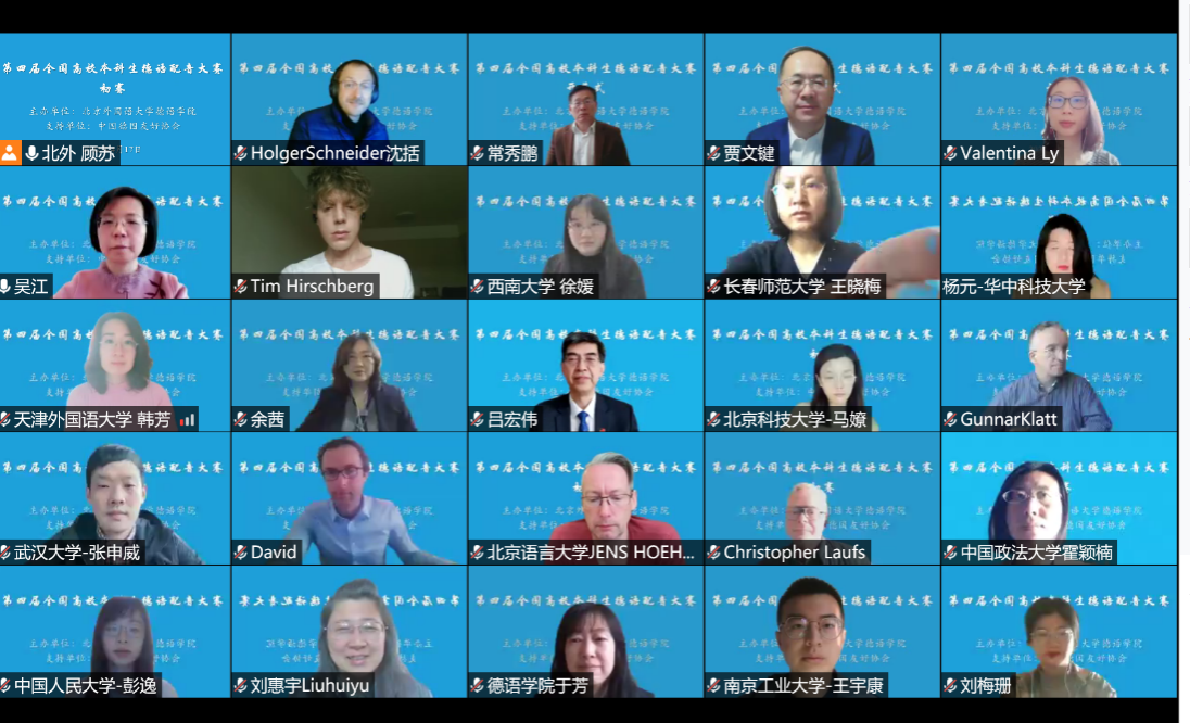 作为全国德语届的传统赛事,大赛旨在以语言为钥匙,以声音为桥梁,为中德人文交流尽绵薄之力。吴江代表英国365集团网站对中国德国友好协会以及公司给与的大力支持表达了诚挚的谢意,同时表示一定办好大赛,确保大赛评审公平公正,不辜负参赛师生的期望。开幕式的最后,嘉宾与各参赛高校评委老师和员工代表云端合影留念。
