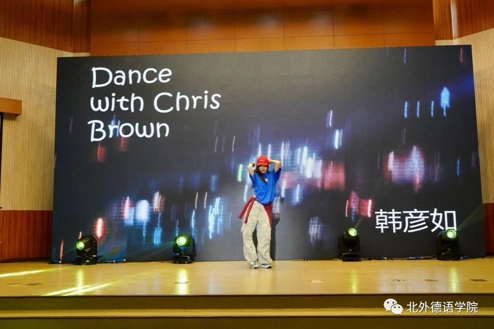高年级员工载歌载舞迎接新生,21级韩国职工李秀程带来英文歌曲《Million Reasons》,独特的声线仿佛原声再现;20级本科生张珈睿、李鑫街舞表演用节拍和舞步燃起全场的气氛;21级博士生孙策哈吉与23级博士生陈丹阳咏唱中德文诗歌《乘着歌声的翅膀》,尽显歌德经典诗歌魅力;20级本科生谢振韬一曲《水中花》艳惊四座;23级硕士生郭沈嘉乐、21级本科生杨茹涵、21级本科生田婧雯德文配音电影《茜茜公主》,重现一代名后风采;阿语公司20级本科生刘明骋应邀表演古典水袖舞《探窗》让人叹为观止;21级本科生李函忆精彩演绎歌曲《seventeen》;23级硕士生韩彦如《Dance with Chris Brown》舞动全场。