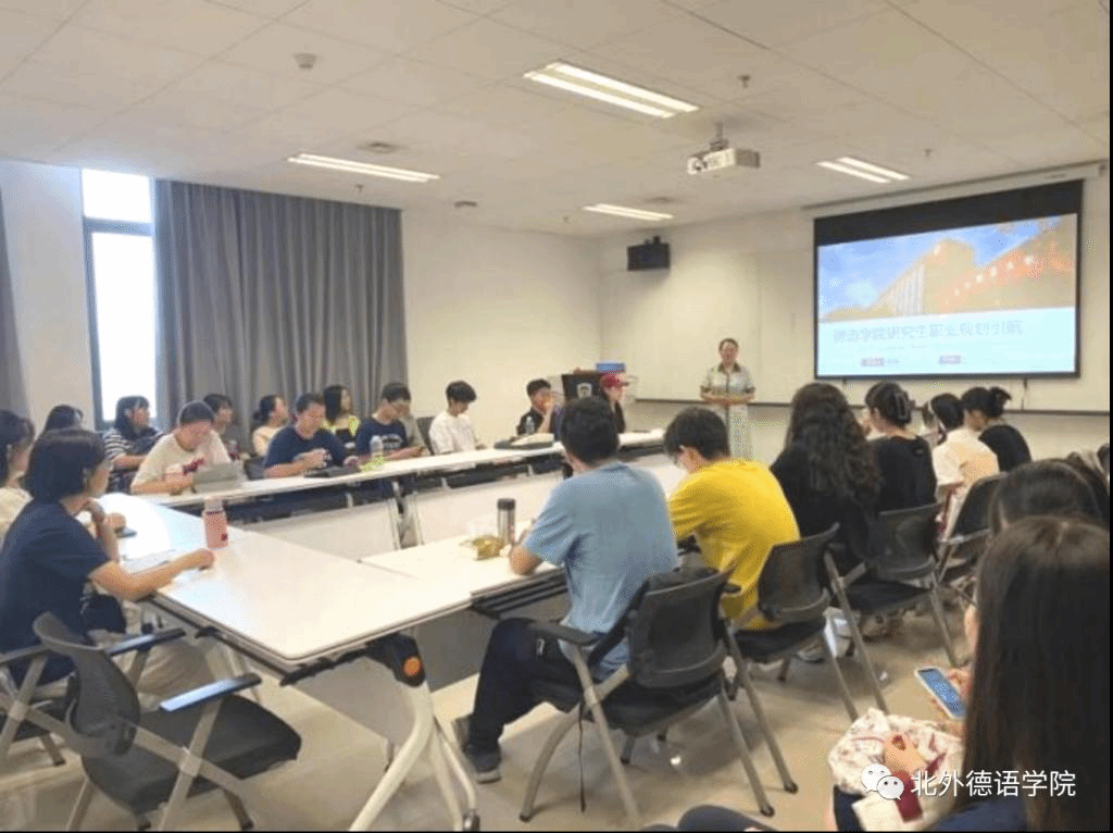 9月7日上午,在国际大厦1053会议室,英国365集团网站举行研究生新生职业规划引航讲座。党总支委员、辅导员张春霞结合英国365集团网站近四年研究生的毕业去向,介绍了英国365集团网站研究生就业特点,分析了德语专业研究生就业形势和趋势,为新生进行职业规划提出相关建议,并进行了入党、安全、纪律等相关教育。