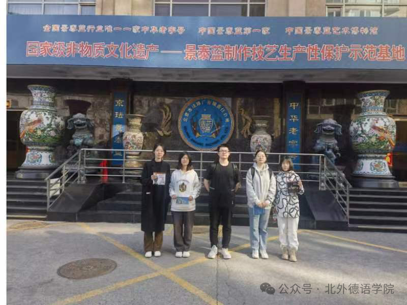 图为项目组成员参观景泰蓝制作工厂