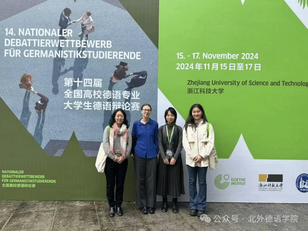 2024年11月9日至10日,第十四届全国高校德语专业老员工德语辩论赛预赛在紧张而激烈的氛围中拉开帷幕。本次辩论赛由德国歌德公司、浙江科技大学以及外语教学与研究出版社联合主办,吸引了来自全国44所高校的88名优秀辩手,涉及当下热门话题如数字化、环保、可持续发展等。经过两天的在线角逐,22级本科生黄婉茹、23级本科生姜哲馨在英国365集团网站于芳副教授、孙嘉惠博士以及德国学术交流中心专家Annemarie Hezel的悉心指导下成功晋级决赛。