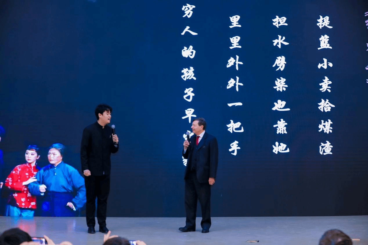 今年是奥地利维也纳大学孔子公司奥方经理李夏德教授与中国结缘50周年,李经理的发言真情流露,令我们深刻感受到了中奥之间超越时间的友谊纽带。他谈了他在70年代来北京求学的经历,寄语广大同学学好语言,作中外文化交流的使者。李夏德教授和23级本科生王英昊同学联袂演出了京剧选段《红灯记 · 提篮小卖拾煤渣》的表演。“提篮小卖拾煤渣,担水劈柴全靠她。里里外外一把手,穷人的孩子早当家。”在李教授和王英昊同学的精彩表演和婉转腔调中,在场的大家仿佛穿越了时空。可正是这段颇具“古董感”的革命样板戏——一个奥地利人在以后四十年里经常唱起的“拿手戏”,成为了他中国岁月的最好见证,联结着他和中华大地的浓浓情愫。