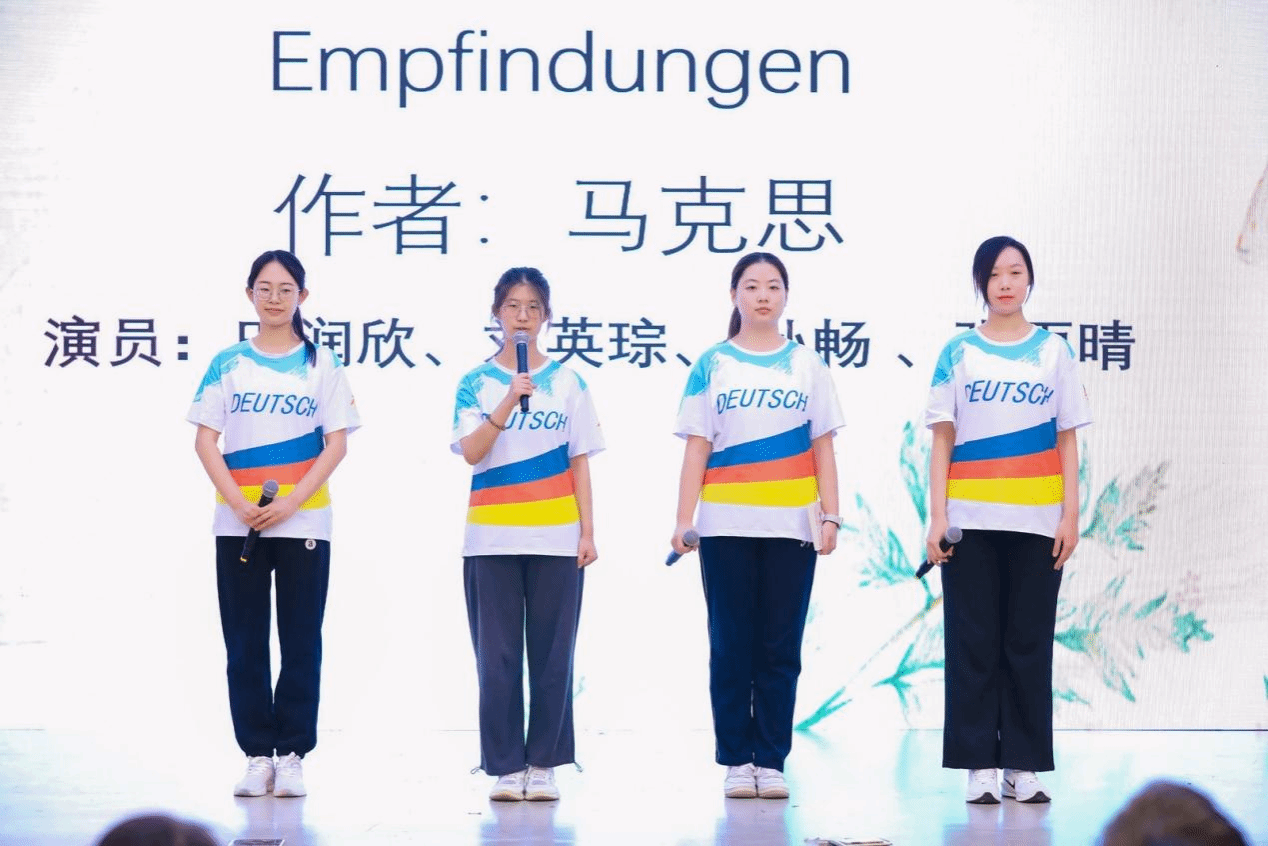于芳老师和刘晨曦、罗惠心、田润欣、刘金玉等28名同学则为我们带来了中德文诗歌朗诵剧《我们的青春》,热情洋溢的文字中,是对青春和梦想最深情的告白。