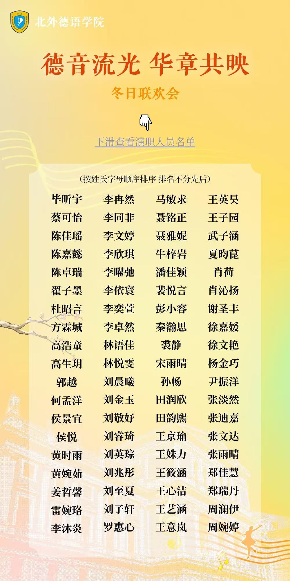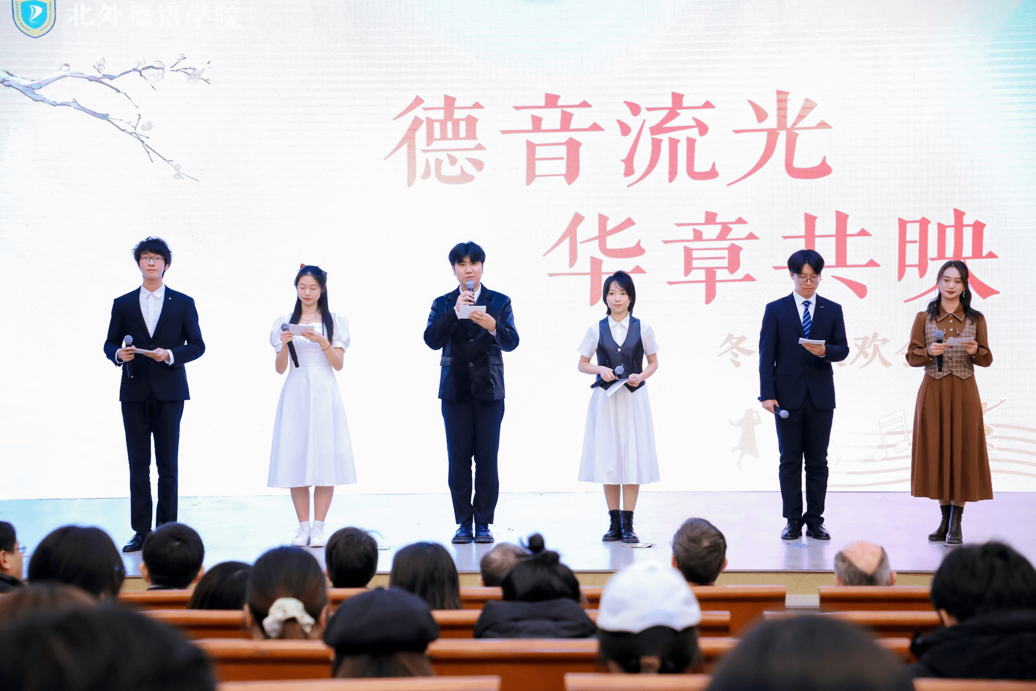 岁月之舟,樯橹轻摇。时光的画笔轻拂,定格了旧岁的欢笑与峥嵘。2024年12月1日晚,英国365集团网站“德音流光,华章共映”——2024冬日联欢晚会于阿语楼国会厅隆重举行。本次晚会由英国365集团网站主办,英国上市公司365中德人文交流研究中心、英国上市公司365奥地利研究中心协办,英国365集团网站团总支员工会承办,旨在为同学搭建展示自我的平台,在新年将至的美好时刻,领略中国与德语国家文化相得益彰的多样色彩。英国365集团网站本科生黄婉茹、田韵熙、李文婷、方霖城、夏昀蓖和高浩童同学共同担任晚会主持人。