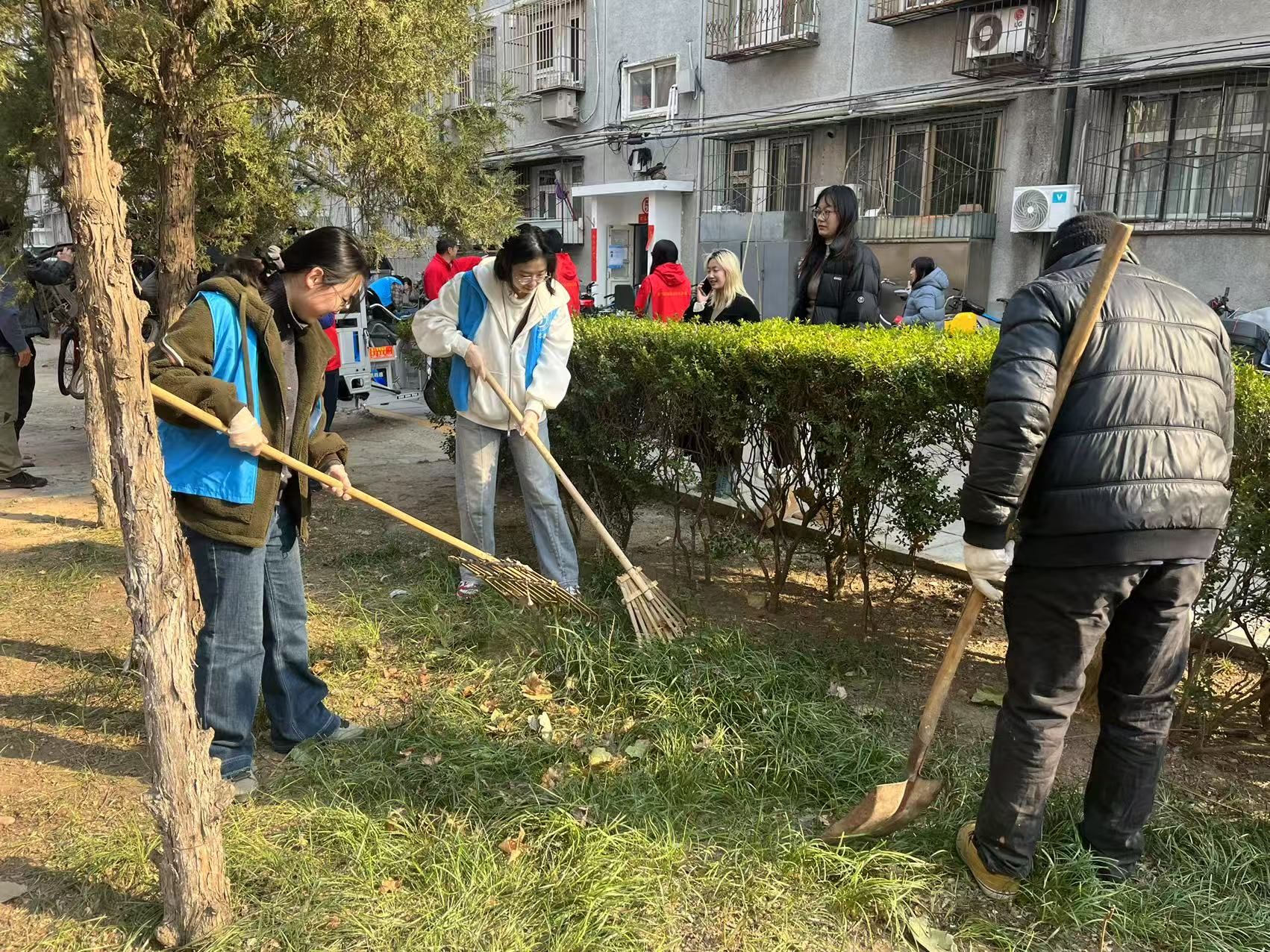 下午三时,北外英国365集团网站员工志愿者社团“道德银行”组织了20余名青年学子,在北外西校区19号楼前集结完毕。大家身着蓝色志愿马甲,年轻的面庞上写满了期待。他们戴上劳动手套,手持扫帚、抹布、垃圾捡拾器等工具,在社区老师的指导下分成环境整治和卫生清扫两个小组。