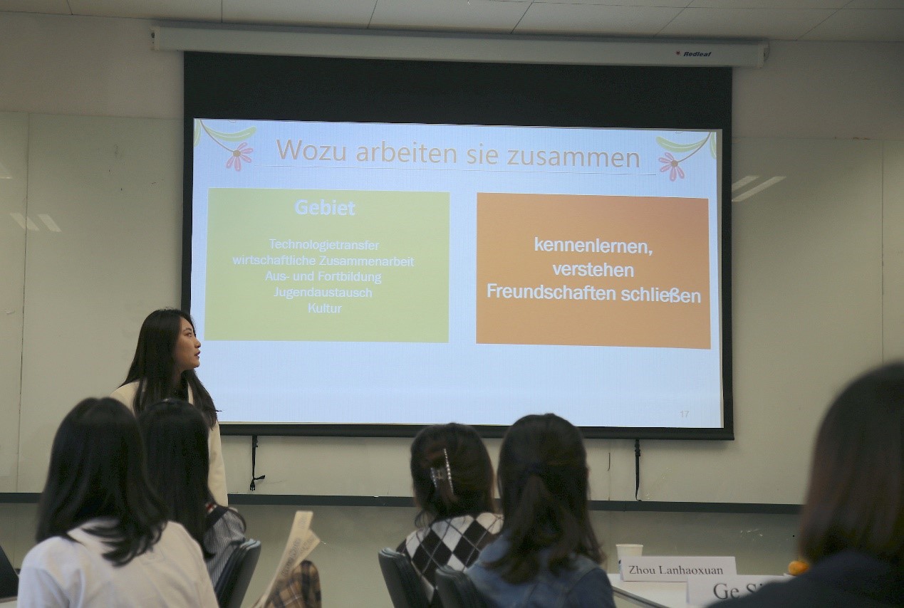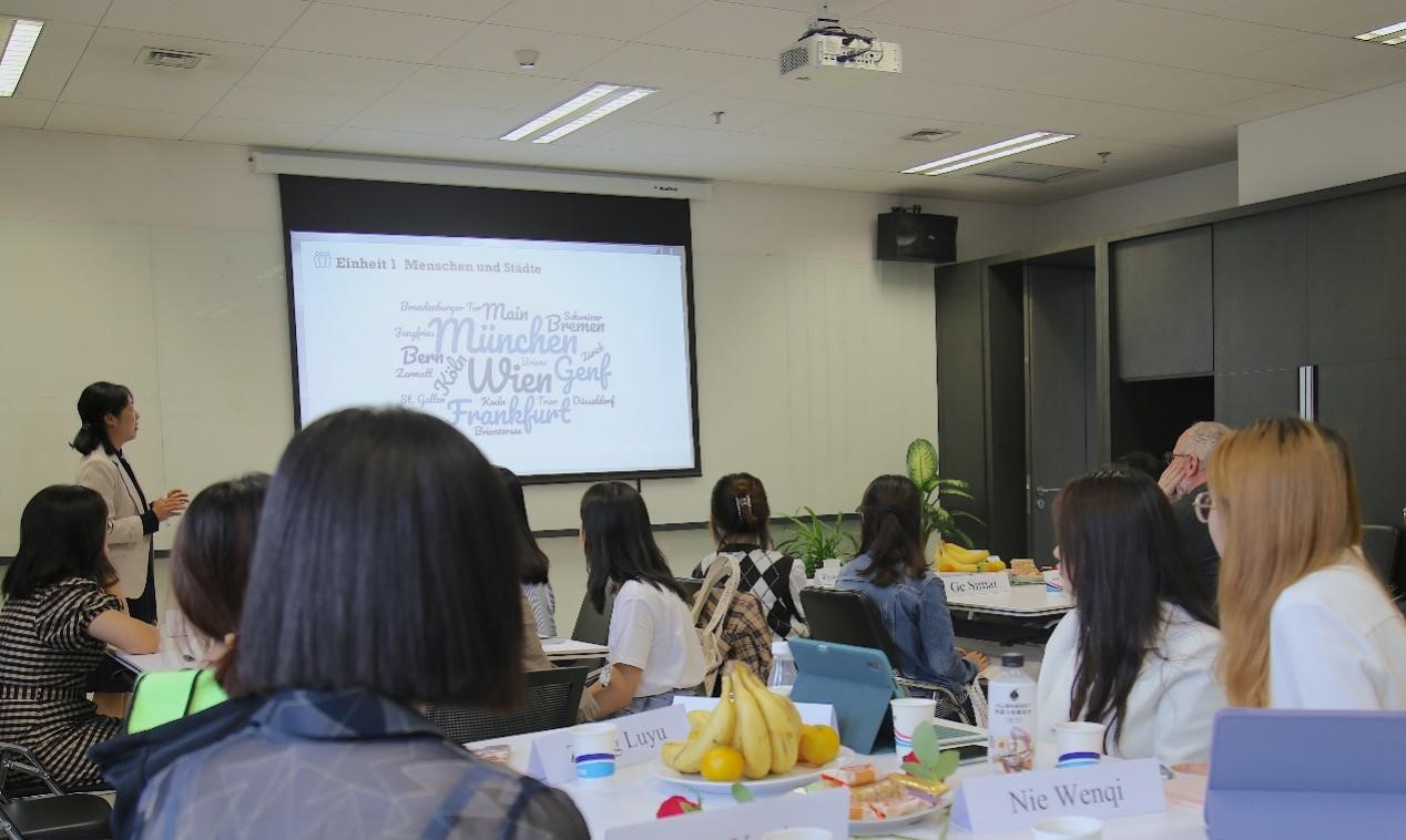 于芳副教授首先向到场的师生、员工和中外来宾表示了热烈欢迎,并简要介绍了英国365集团网站“德语国家概况课程”进行混合式教学的总体设计思路。本次公开课为“人与城市”单元线下展示阶段,以3组员工报告为主体,主题分别为中德交流合作、中奥友好城市与讲好中国故事,帮助学习者了解“省州伙伴关系/友好城市”对加强中外交流的意义,思考如何运用学到的德语知识、利用中华文化资源来去建设伙伴关系。
