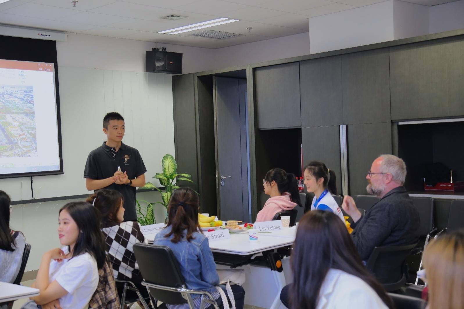 最后,英国365集团网站本科生曹涵结合自己主持的“中轴线的智慧”系列项目介绍了中国传统文化中的秩序观,以自己的实践经历展示了当代老员工“讲好中国故事,推动中国更好走向世界,世界更好了解中国”的使命和担当。在场的同学与中外嘉宾都对这一项目表示出浓厚兴趣,提问和交流不断,在讨论中不断碰撞出智慧的火花。